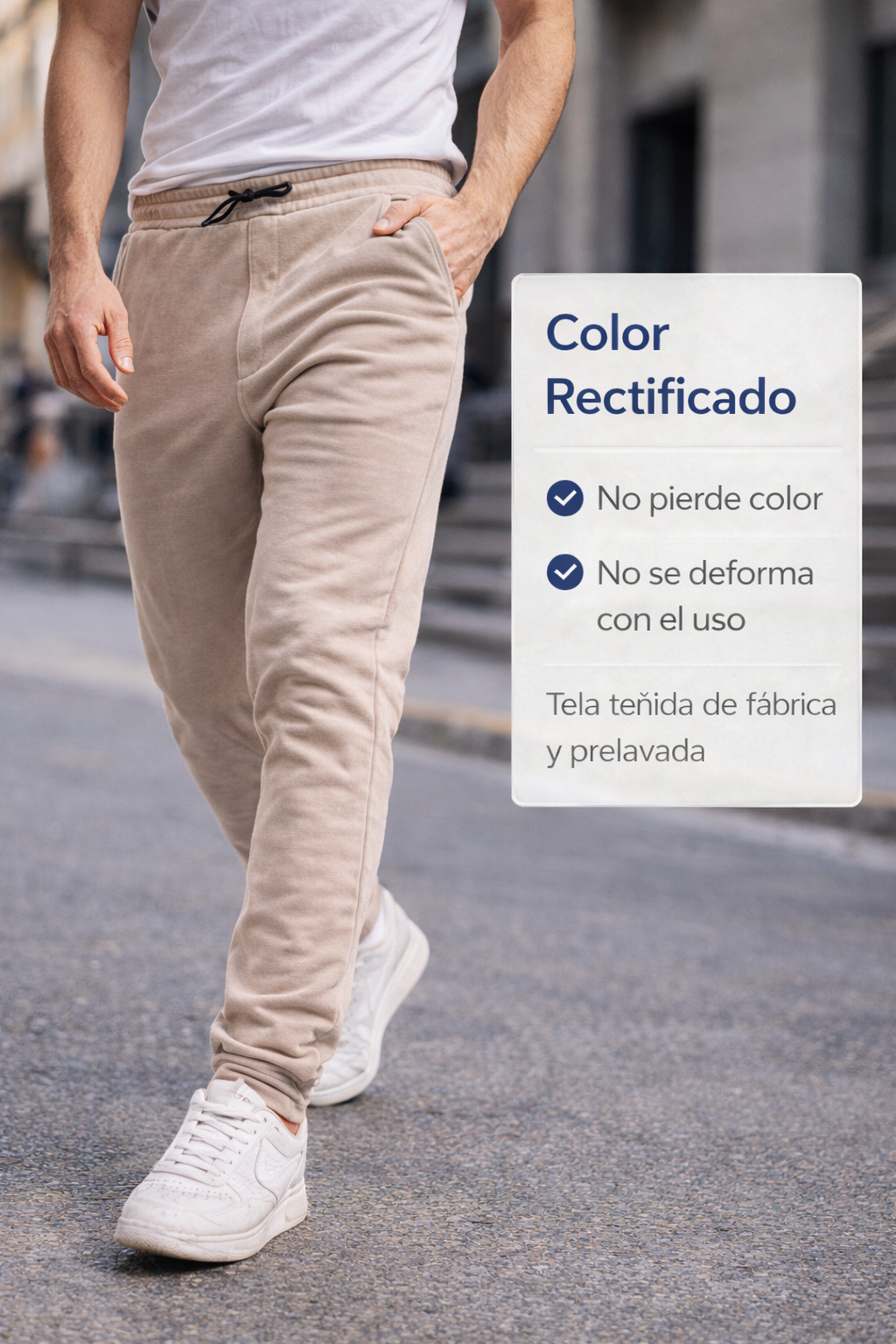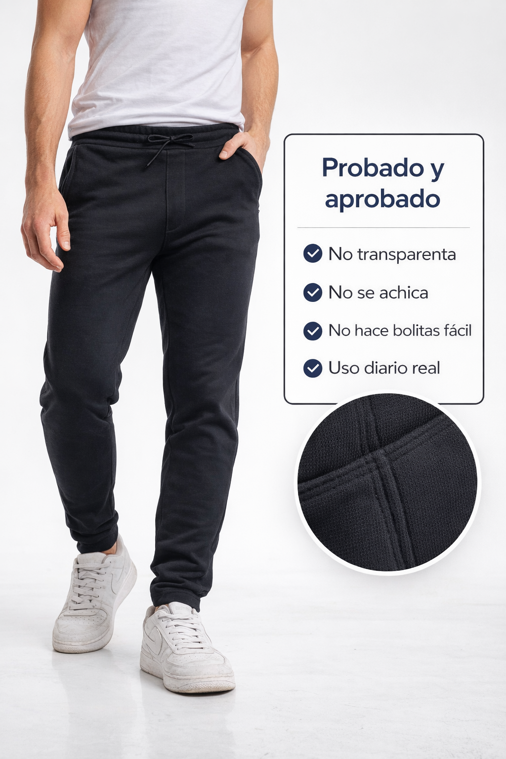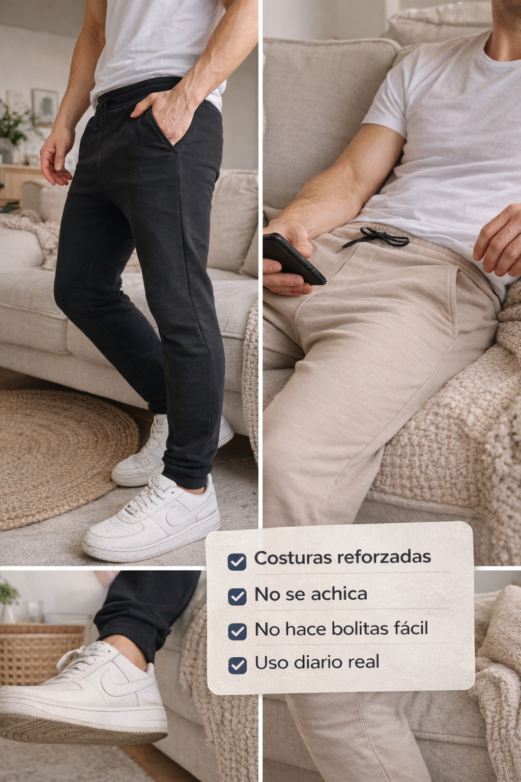 Diseño: Corte relajado con cintura elástica y cordón ajustable, adaptándose a diferentes tipos de cuerpo.