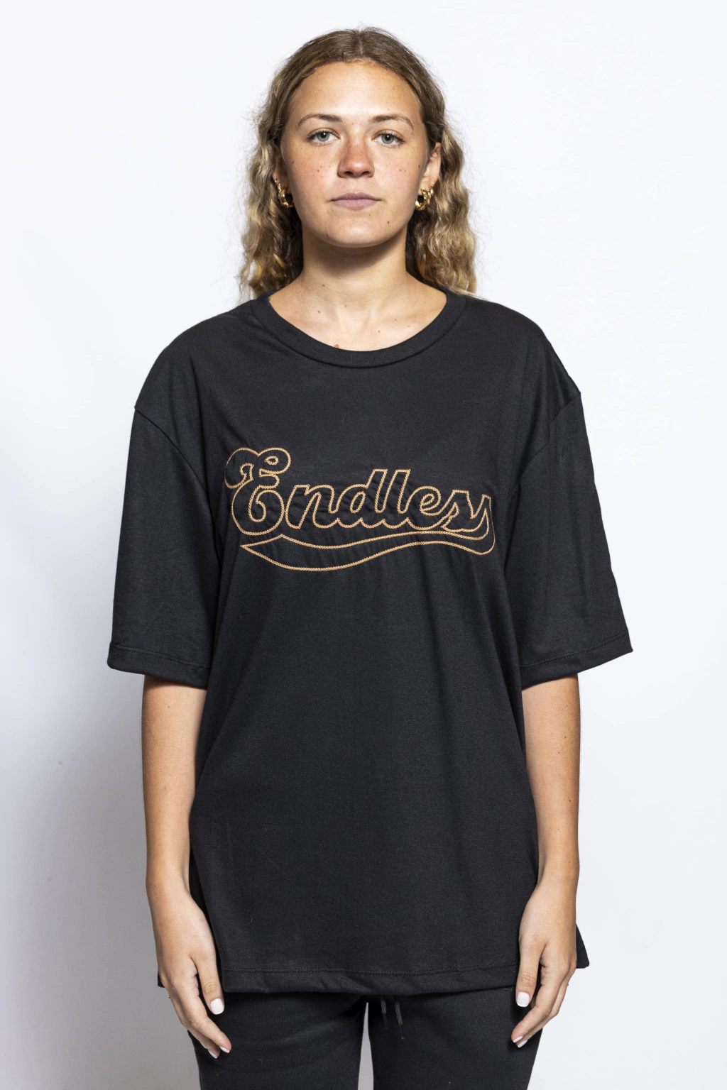 Una remera oversize de algodón con bordado “Endless” en el pecho y espalda que aporta un diseño elegante y distintivo sin perder comodidad.